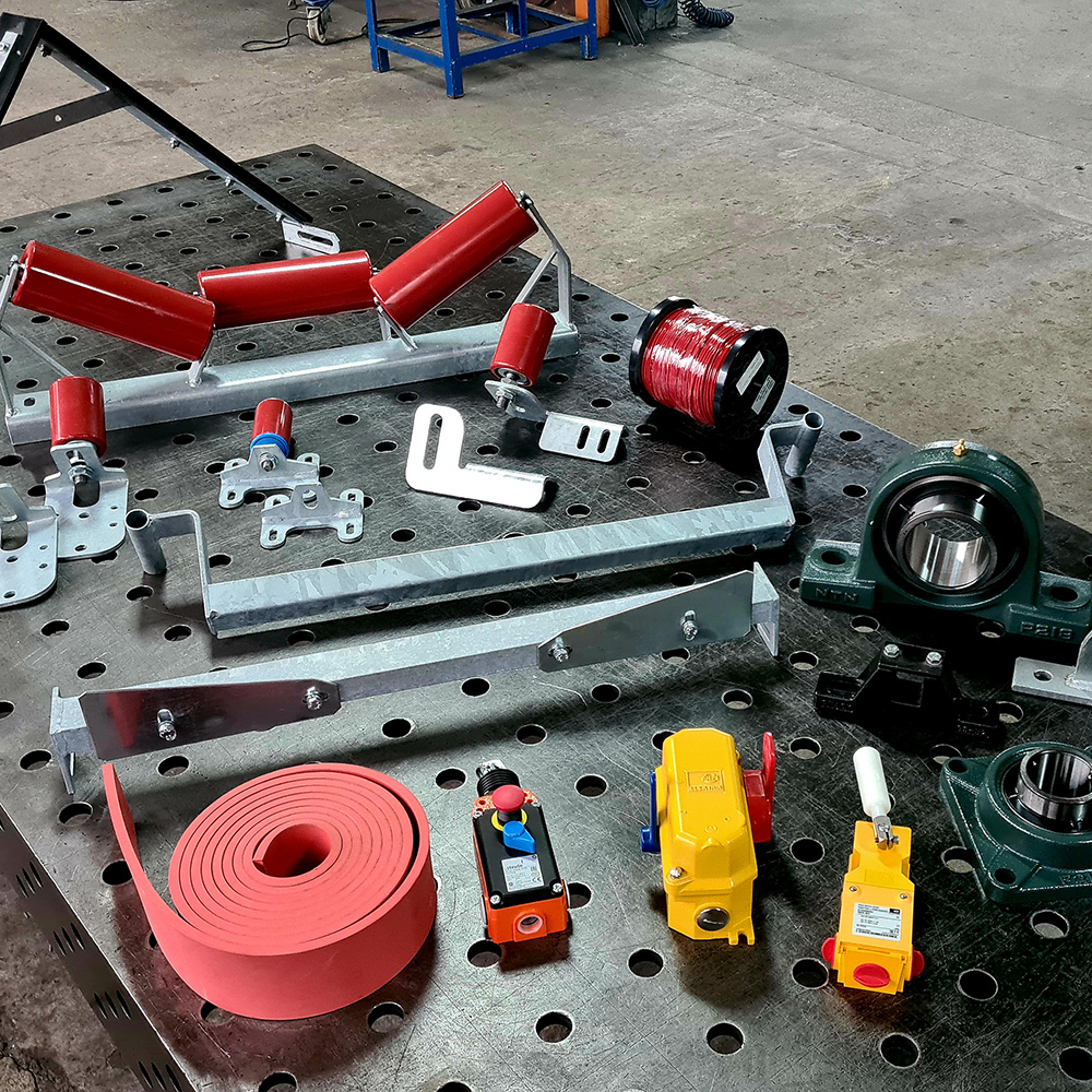 Als kompetenter Partner namhafter Hersteller und über 50-jähriger Erfahrung im Bau von Förderbändern und großen Förderanlagen haben wir ein umfangreiches Teilelager für alle Komponenten.